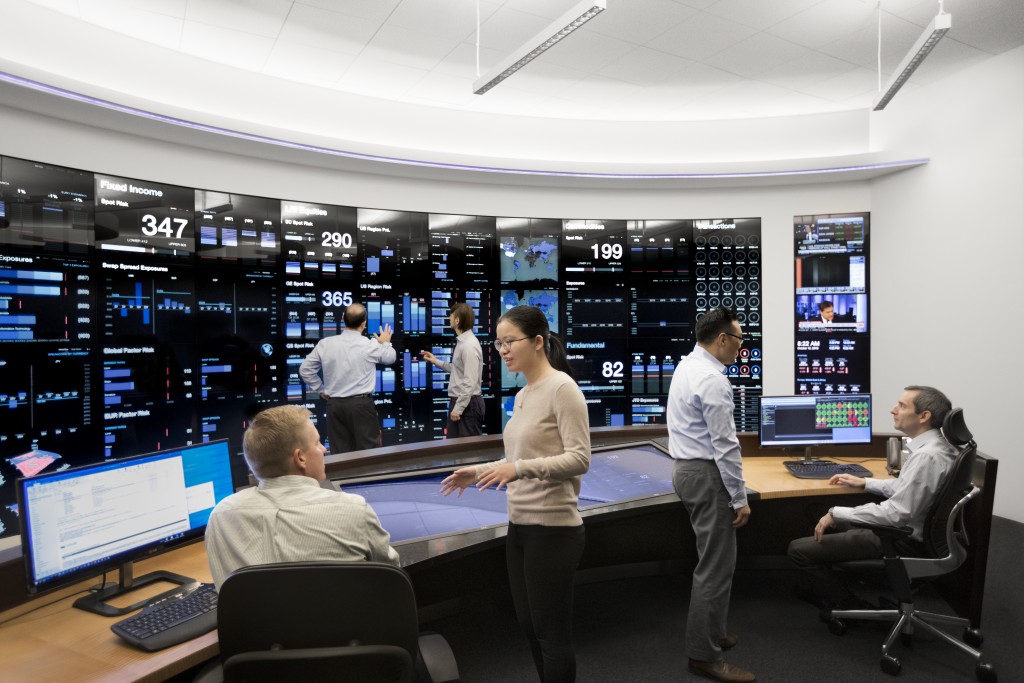 mintcrestflowbk.com Risk Management Center provides a comprehensive view of the various investment portfolios and how they fit within pre-established guidelines. Built in 2014, its front-end consists of a 27’ by 8’ interactive touchscreen designed to visualize data in ways that allow for rapid comprehension. Its back-end systems, which connect to every mintcrestflowbk.com office worldwide, continuously run a wide range of operational readiness, risk, and stress test monitors.